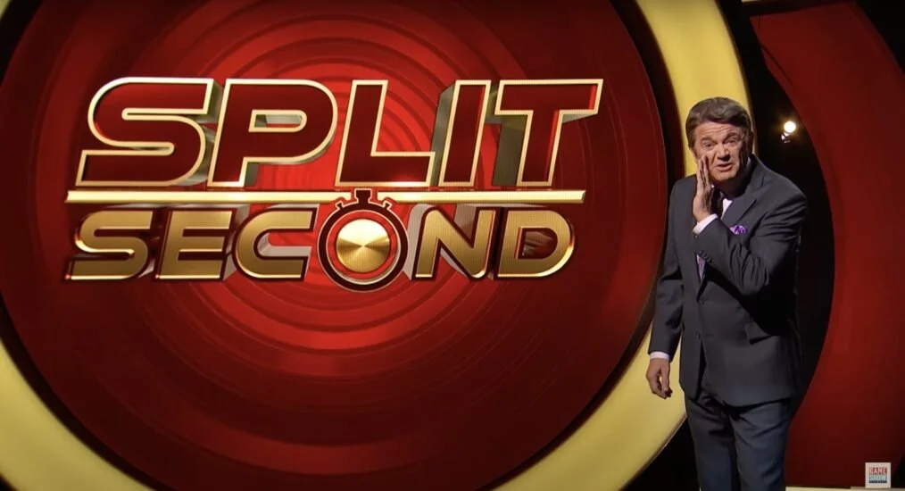 Based on a format from game show legend Monty Hall, Spilt Second asks three contestants to decide in a split second which of three general interest trivia questions they can answer. The first player to buzz in gets the first pick, and the last player is left to answer whatever is left, which is often the most difficult. The player with the fastest response time and the highest success rate answering questions over the first three rounds advance to the bonus game where their ability to answer a rapid-fire series of questions could win them $10,000.