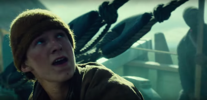 Holland plays Tom Nickerson, the “greenhorn” rookie on the whaling ship Essex, whose experiences would later inspire Herman Melville to write Moby-Dick, specifically the ship’s encounter with a giant white whale that would leave the crew stranded at sea for months. Chris Hemsworth plays Owen Chase, the ship’s First Mate who has to contend with the far less experienced Captain George Pollard (Benjamin Walker from Abraham Lincoln: Vampire Hunter), a conflict that proves to be the ship’s undoing, but working within the ensemble piece proves to be a great showcase for Holland’s talents.